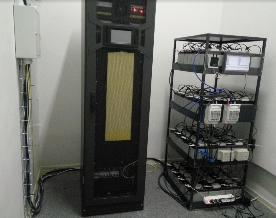 UPS ir akumuliatoriaus stovo su pritvirtintu BMS išvaizda: